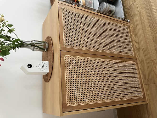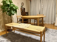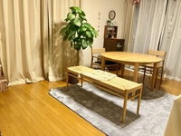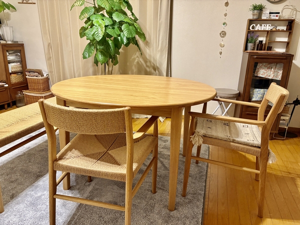 ミッドブラウンの色が好きなのですが、どうしても他社の家具とも合わせ易いのはナチュラルカラーなので、メインダイニングのテーブルとしてこちらのナチュラルを購入し、その後はリセノさんの家具を中心にして部屋を整えています。