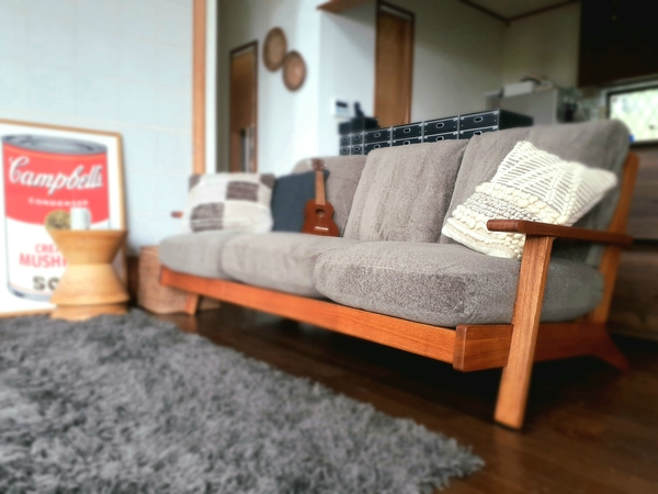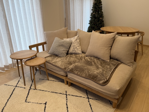 AGRAソファを4年ほど愛用しておりましたが引越に伴い、木造建築にあう木の材質が際立ったNOANAソファを選びました。