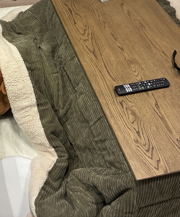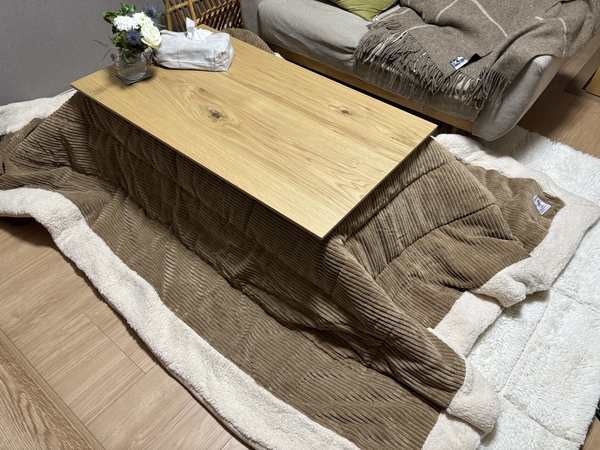 コタツテーブルに無垢材が使えない(熱で反る)みたいで色味が若干違った(白っぽいかな?)のが残念でした。
