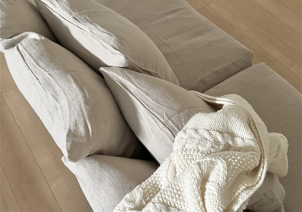 コーデュロイとブラウンの組み合わせと迷いましたが、ウッド+無彩色のリビングに統一したかったので前者に決めました。