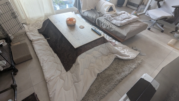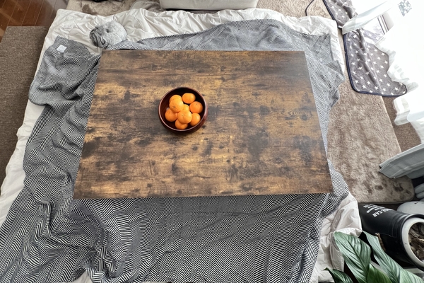 リビングがあまり広くないので、暖房器具を置くことができず困っていたところ、こたつテーブルを見つけました。