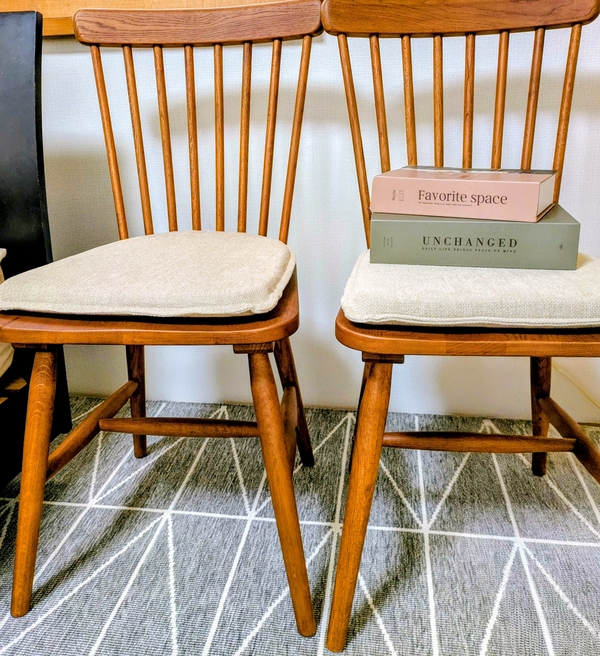また、座面の奥行きを活かして、普段食事の際には背面にクッションを置いて利用しています。