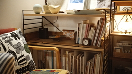色と木の材質がフレームを飾った本棚の材質と色と同じでしたので、落ち着いた素敵な雰囲気のインテリアになり嬉しいです