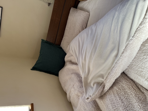 リモコンやスマホ、ペットボトルなどを置けて実用的ですし、横になるときには少し硬めで、枕代わりにもなります。