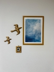 玄関の突き当たりにスツールを置いて竹のポンポラに灯りを入れているのでそれを置いて上の額縁をライトアップしてみました。