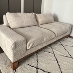 主人と一緒に青山の実店舗に行き、サイズ感、座り心地、また同時に気になっていたネストテーブルとプフなどとの組み合わせも実際に見てみたところ、想像通りで2人とも気に入ったのでその後すぐに購入しました。