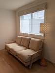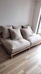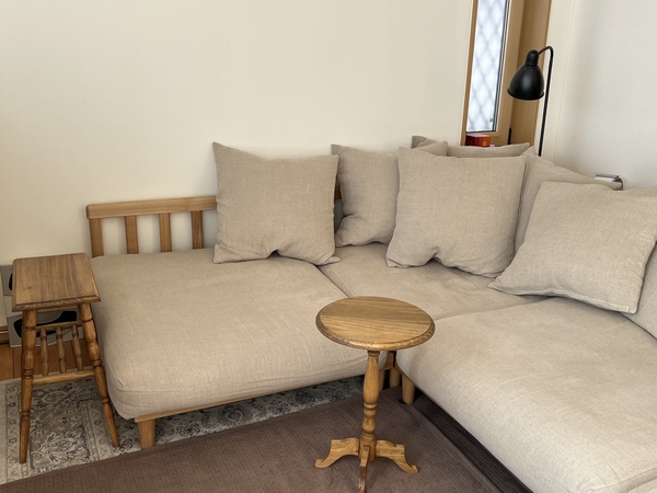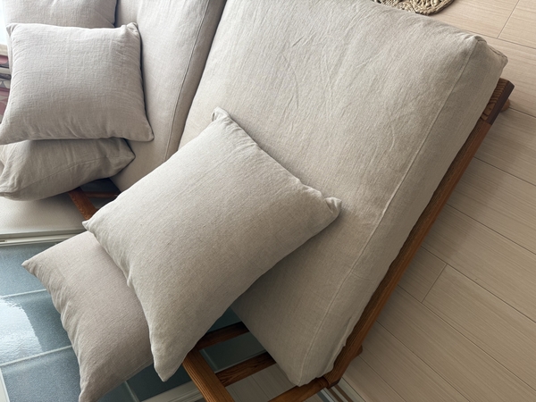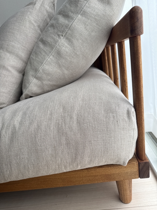 コーナーソファと並べて使用しています。ブラウンフレームのリネン生地。
