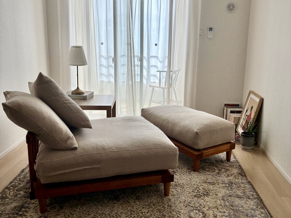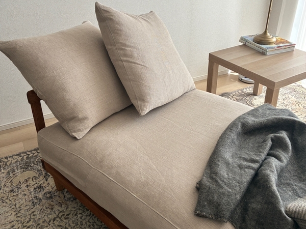 部屋が抜け感なくきっちりしていた印象だったのですが、こちらを置くと肩の力が抜けるような、リラックスできる雰囲気になります。