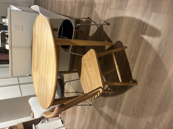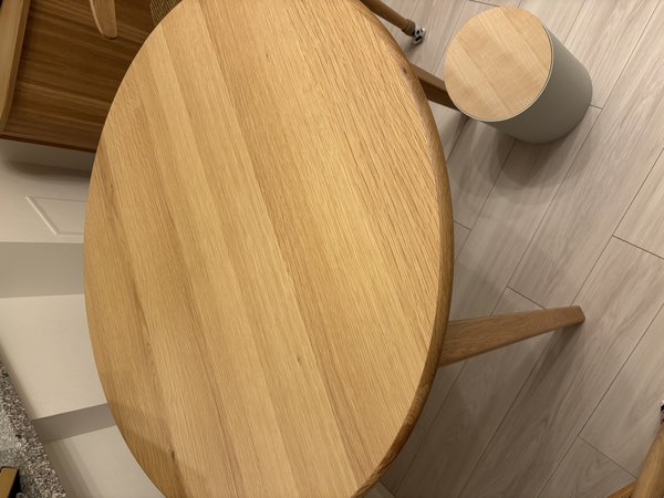 テーブルの木目が綺麗です。暖かな冬を過ごすことができました。