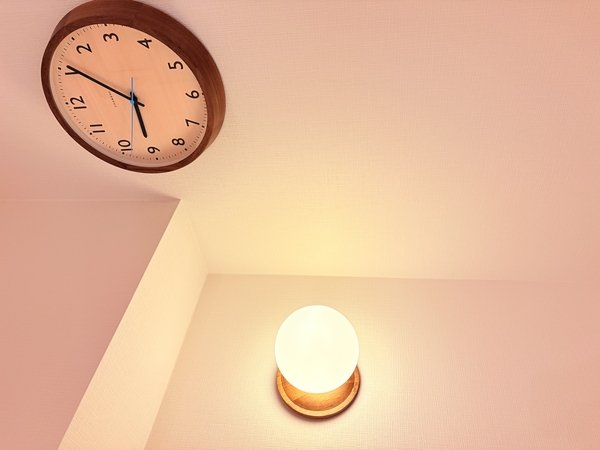 日中は白色ベースが部屋を明るくし、夜は照明によってベージュっぽく落ち着いた色目になります。