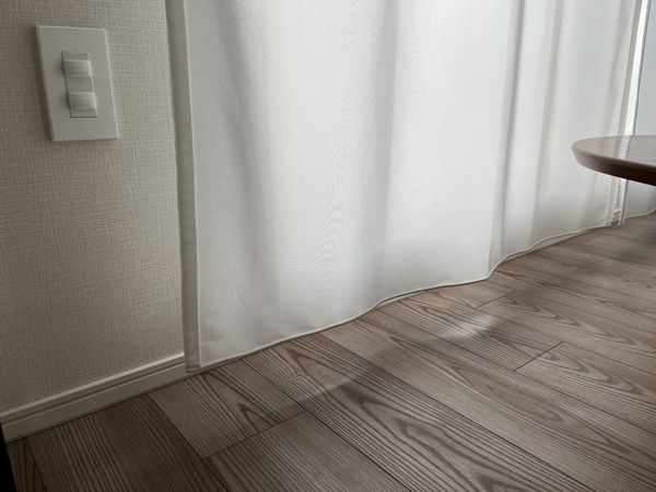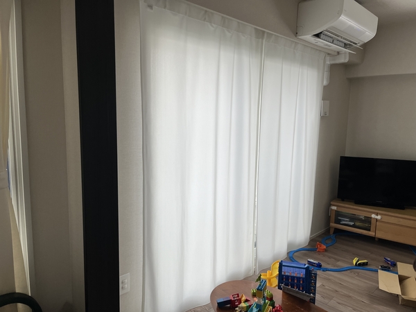 しっかりした生地で今まで使っていたレースカーテンより丈夫な感じがしますし、直射日光を防ぎつつ、暗くなりすぎないですし、遮像効果もあるのでカーテンをすることでお部屋がすっきりして見えます。
